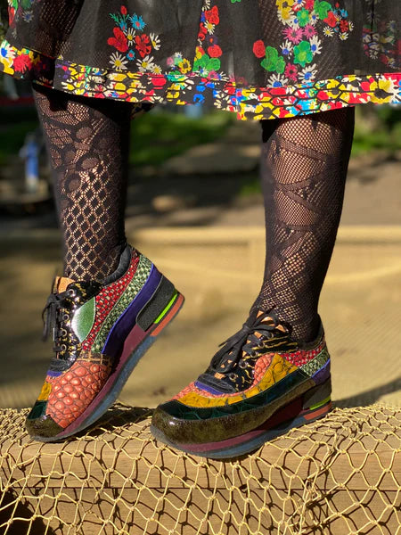 Gerðu djarfa stíl-yfirlýsingu með KR1711 opt.8 — litríkum, handgerðum strigaskóm sem fagna bæði einstakri hönnun og vönduðu handverki. Hér sameinast fjölbreyttar áferðir og marglitt leður í hönnun sem bætir leikandi fágun við hversdagslegt útlit.